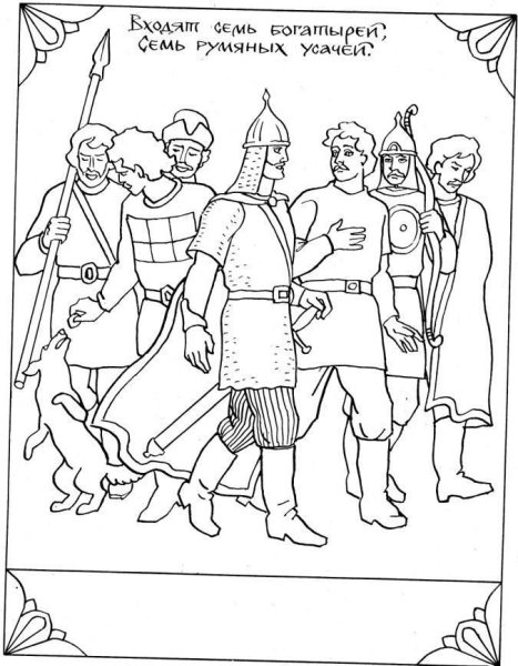 Раскраска о семьбогатырях