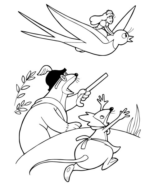 Дюймовочка и Ласточка раскраска