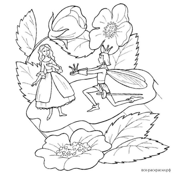 Ганс христиан Андерсен Дюймовочка раскраски
