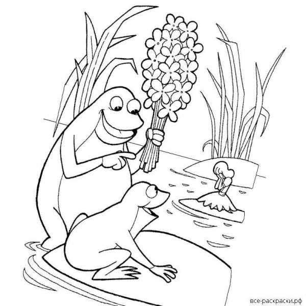 Дюймовочка и жаба раскраска