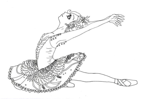 Раскраска балерина сложная