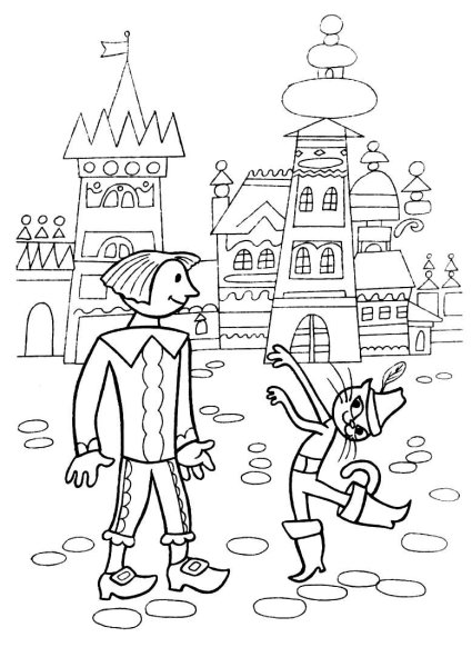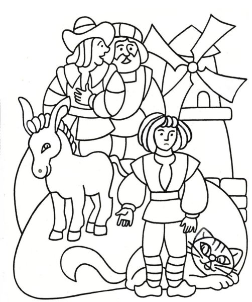 Иллюстрация к сказке кот в сапогах раскраска