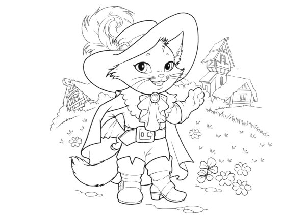Кот в сапогах раскраска
