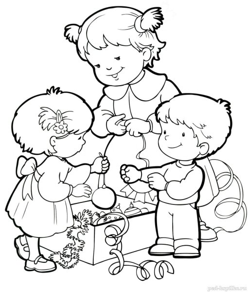 Раскраска дети в детском саду
