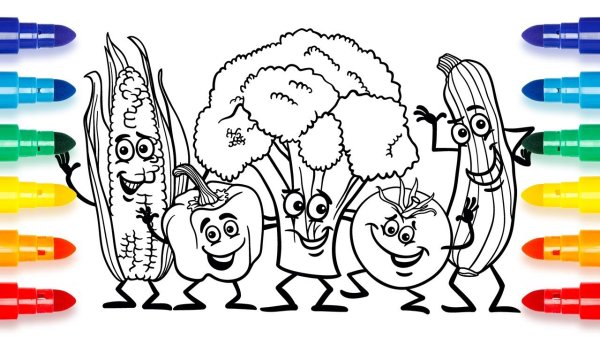 Раскраска Веселые овощи и фрукты