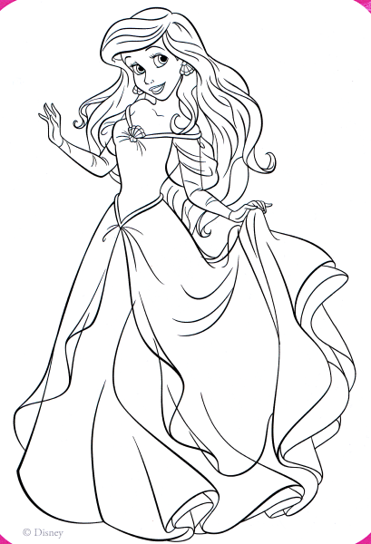 Раскраски принцессы Диснея Ариэль в платье