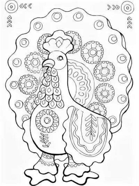 Дымковская игрушка петух раскраска