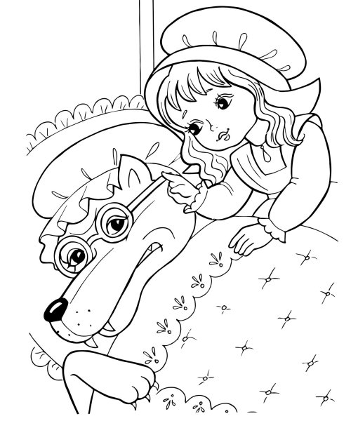 Эпизод из сказки красная шапочка раскраска