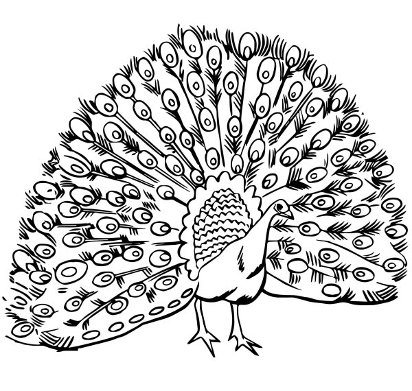 картинки раскраски павлина с распущенным хвостом