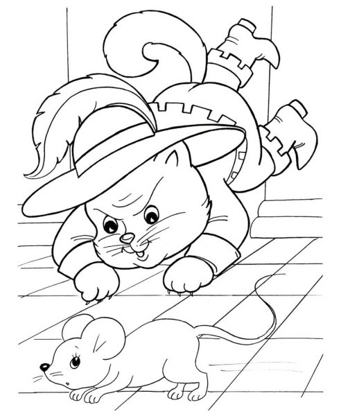 Кот в сапогах расскраск