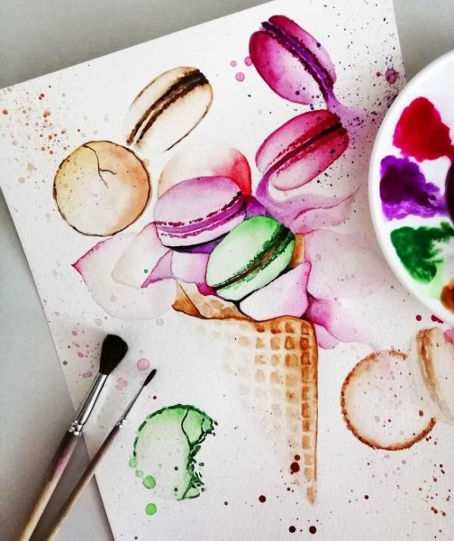 Скетч макаруны акварелью