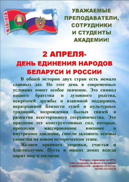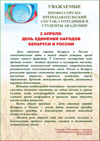 2 Апреля день единения народов Беларуси и России