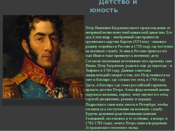 Багратион пётр Иванович (1765 – 1812) факты главные