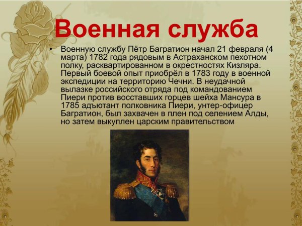 Багратион пётр Иванович Военная служба кратко