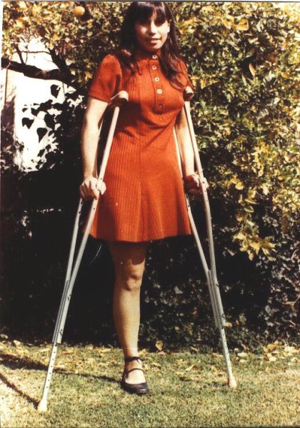 Ретро девушки ампути на костылях