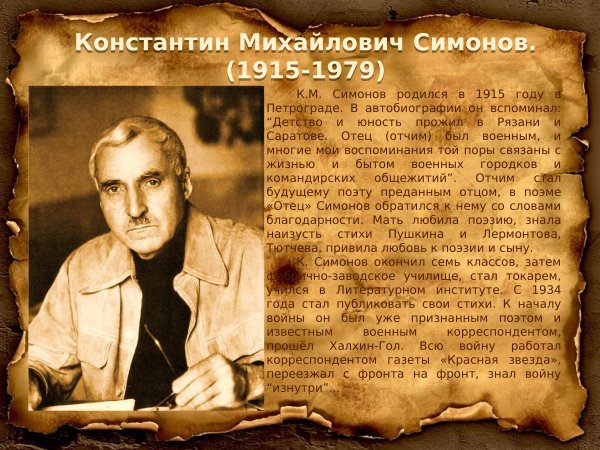 К. М. Симонова «ты помнишь, Алеша, дороги Смоленщины…».